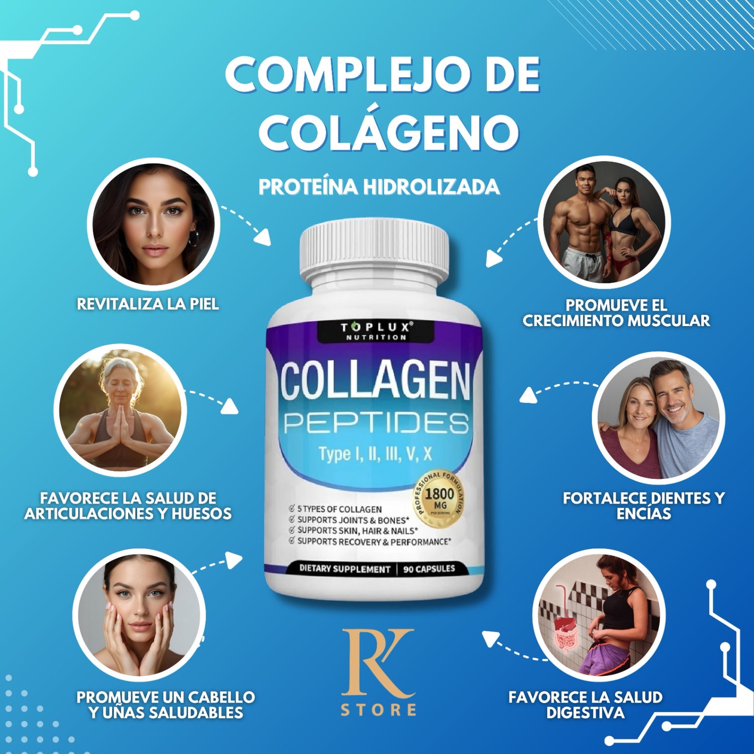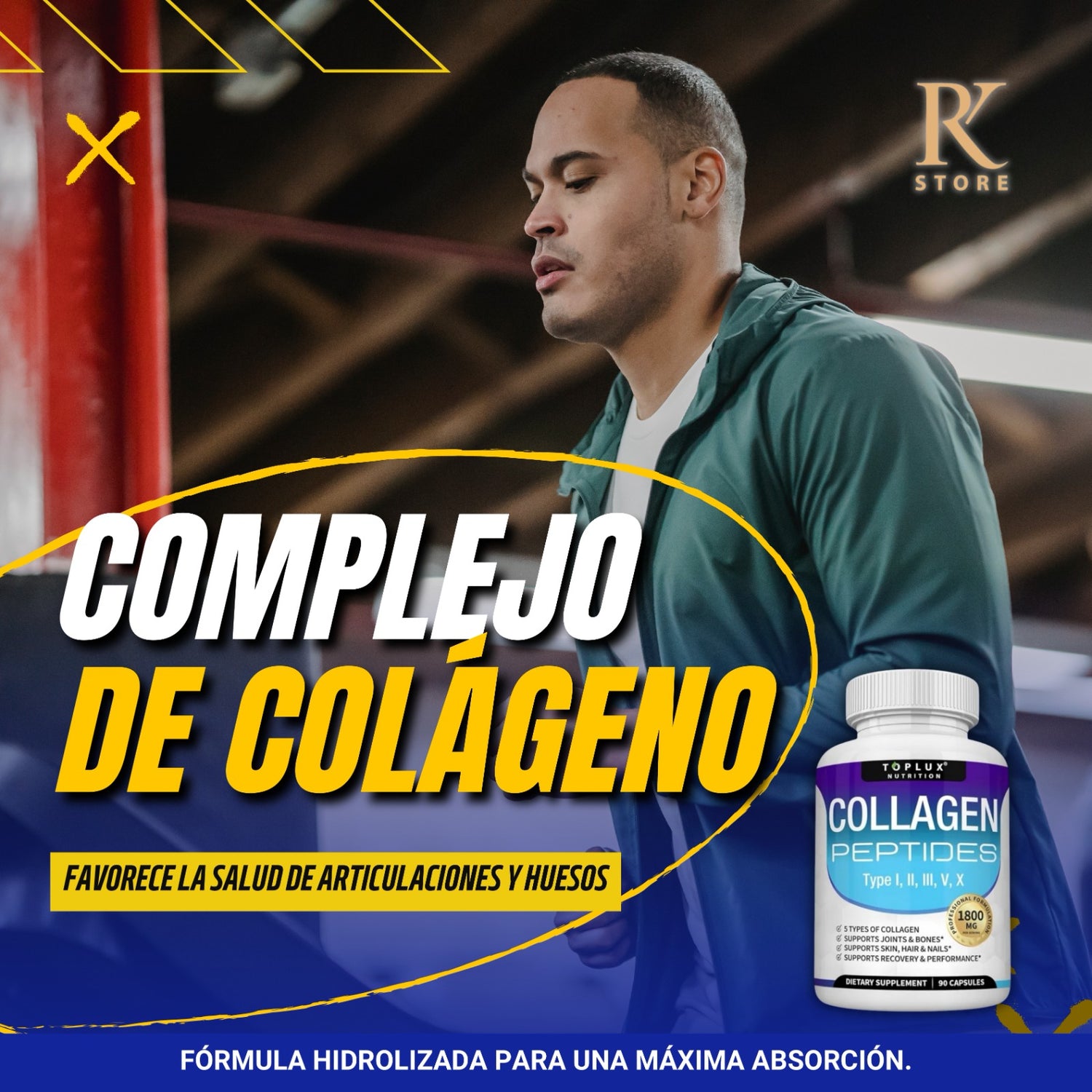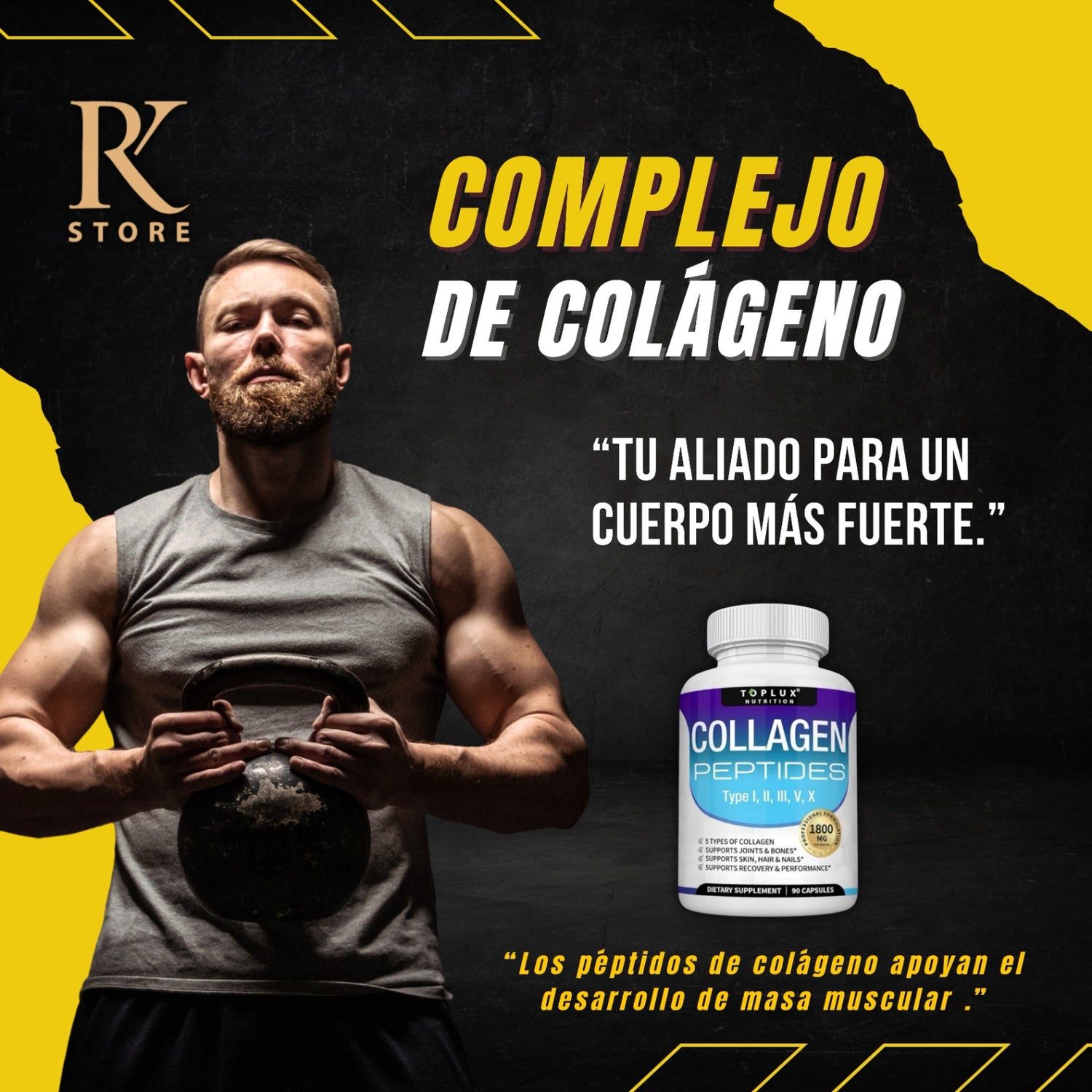 El colágeno es una proteína abundante en el cuerpo. Con la edad, el cuerpo produce menos colágeno de forma natural, lo que provoca dolores, debilidad, sequedad y arrugas en la piel. Con nuestro complejo de péptidos de colágeno, ofrecemos una fórmula que ayuda a fortalecer los huesos, mantener las articulaciones sanas y los músculos tonificados. Nuestras cápsulas de péptidos de colágeno están elaboradas con colágeno hidrolizado para una alta absorción. Como proteína abundante en el cuerpo, el colágeno desempeña un papel esencial en la integridad estructural de la piel y los tejidos conectivos, y puede ayudar a lucir más joven, sentirse más flexible y recuperarse más rápido del ejercicio.