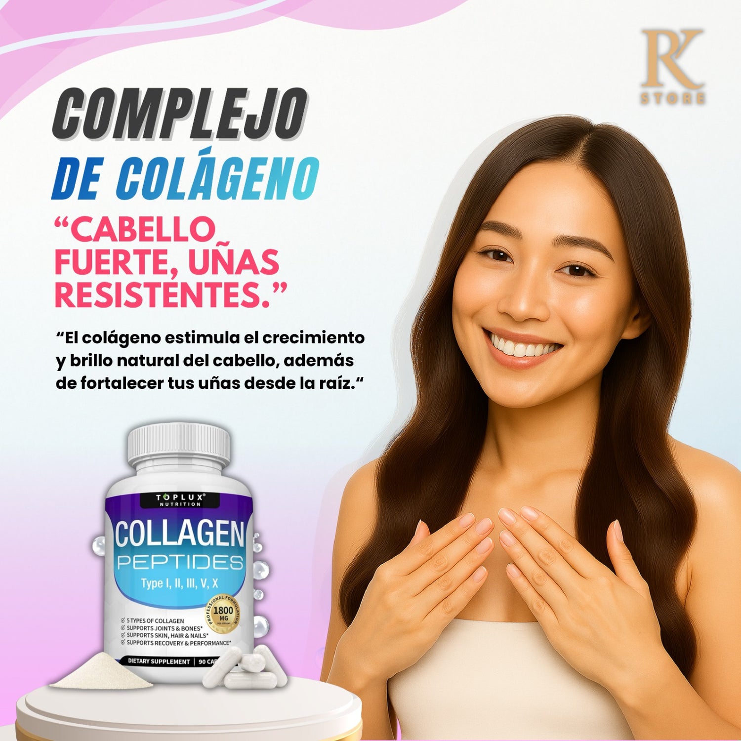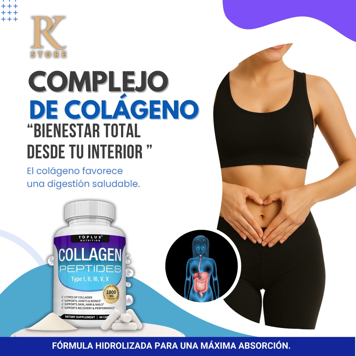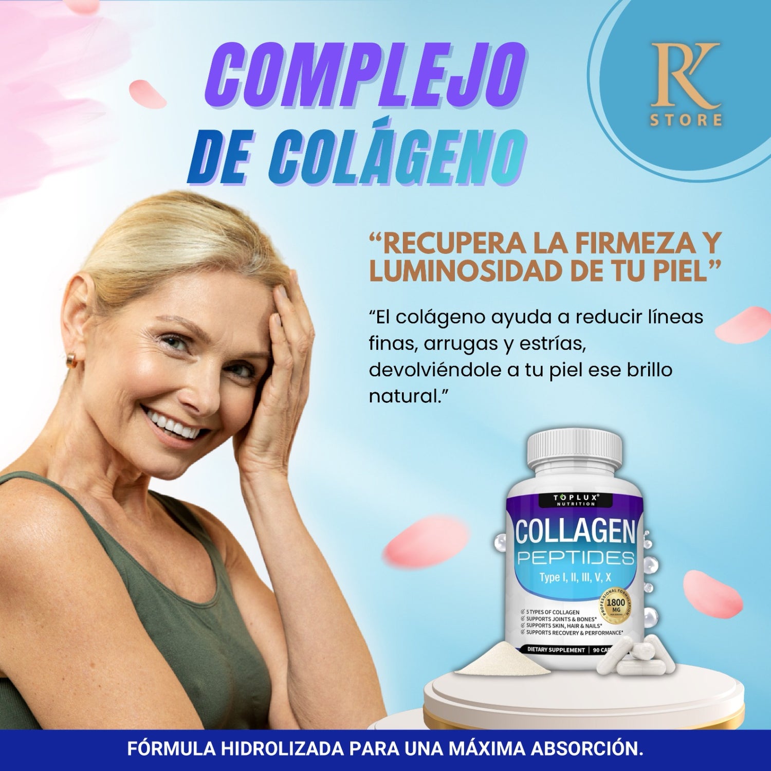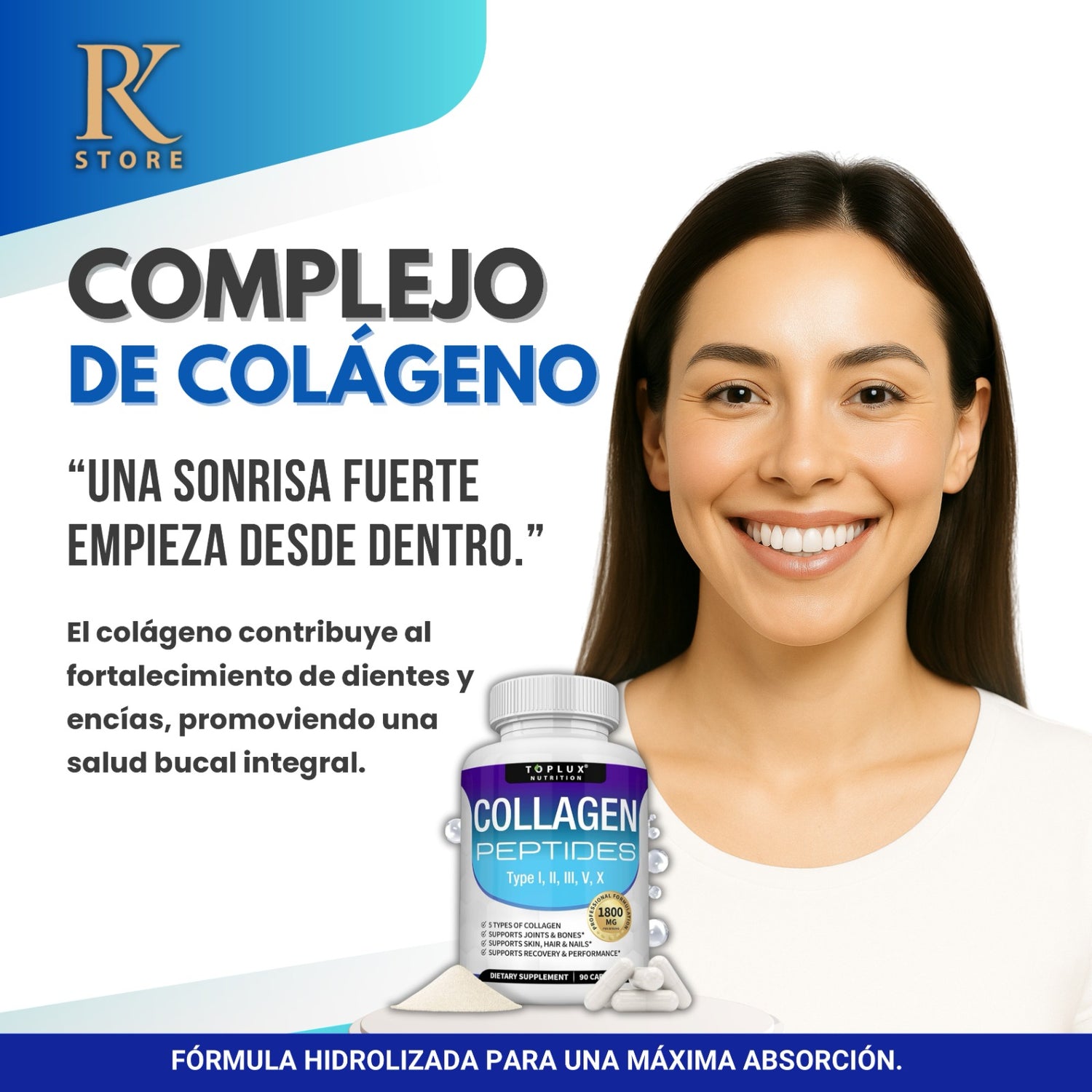 El colágeno es una proteína abundante en el cuerpo. Con la edad, el cuerpo produce menos colágeno de forma natural, lo que provoca dolores, debilidad, sequedad y arrugas en la piel. Con nuestro complejo de péptidos de colágeno, ofrecemos una fórmula que ayuda a fortalecer los huesos, mantener las articulaciones sanas y los músculos tonificados. Nuestras cápsulas de péptidos de colágeno están elaboradas con colágeno hidrolizado para una alta absorción. Como proteína abundante en el cuerpo, el colágeno desempeña un papel esencial en la integridad estructural de la piel y los tejidos conectivos, y puede ayudar a lucir más joven, sentirse más flexible y recuperarse más rápido del ejercicio.